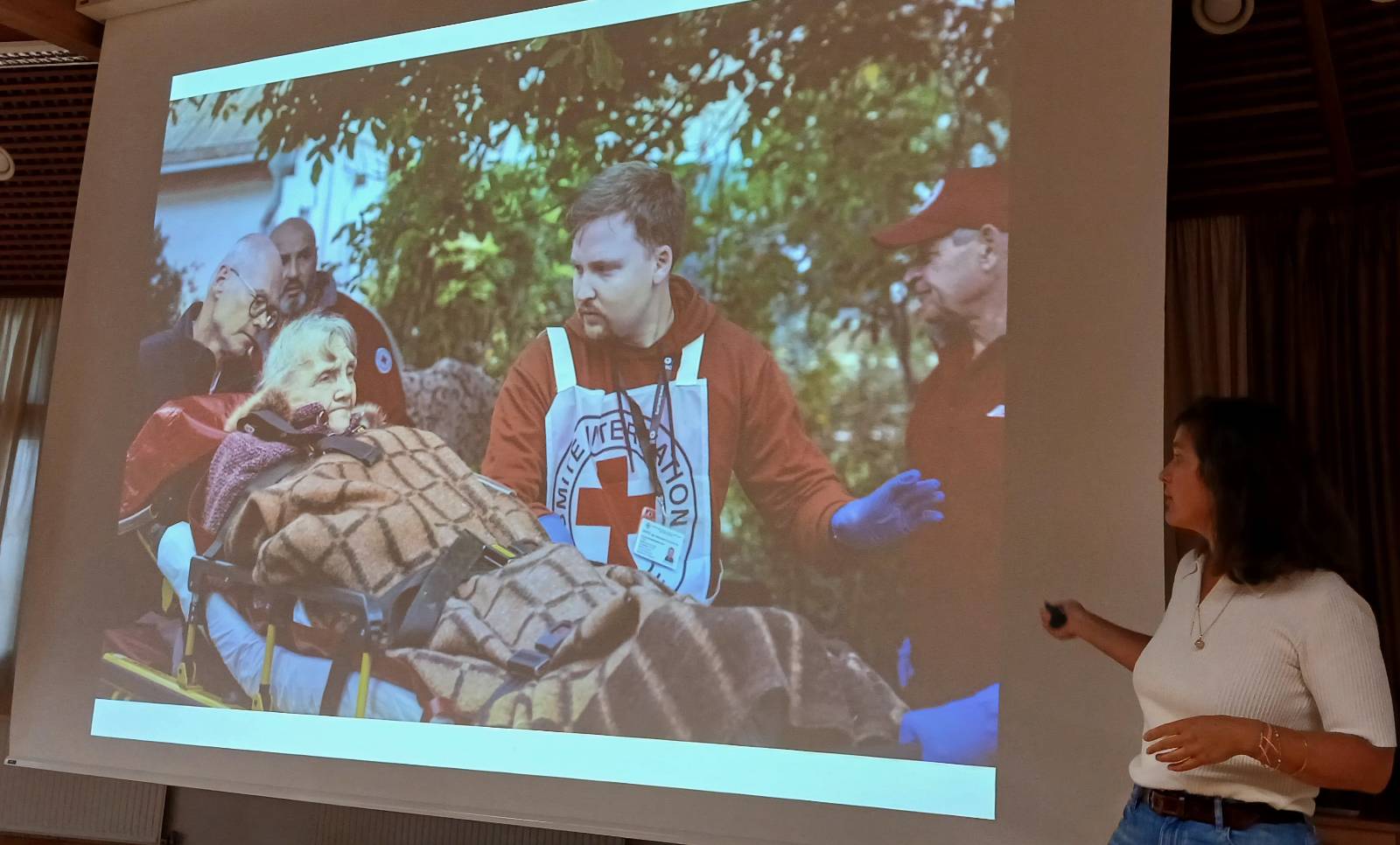 Einen seltenen Gast, nämlich die IKRK-Delegierte Stefanie Gartlacher, konnten wir, vom Vorstand der Tiroler Wehrmediziner der ÖGWMP eingeladen, vor kurzem im Gesellschafts-/Vortragsraum des MilKdo Tirol willkommen heißen. In Zusammenarbeit mit der Offiziersgesellschaft Tirol konnte Obst i.R. Fritz Bieler in einen vollbesetzten Saal blicken und gut 50 Besucher begrüßen: unter anderen OGT Präsident ObstLt HR Niedermayer, den OGT GenSkr Hptm Keil und Mitglieder, Tiroler Peacekeeper VÖP mit Landesleiter Herwig Leo, Mitglieder der Tiroler Landesgruppe ÖGWMP so auch Berufskader. Man ließ sich die Gelegenheit nicht entgehen, aus erster Hand hoch Interessantes und Aktuelles zu erfahren. Vor allem vom letzten mehrmonatigen Einsatzes der Vortragenden in der UKRAINE, der erst vor kurzem im Frühjahr dieses Jahres endete.