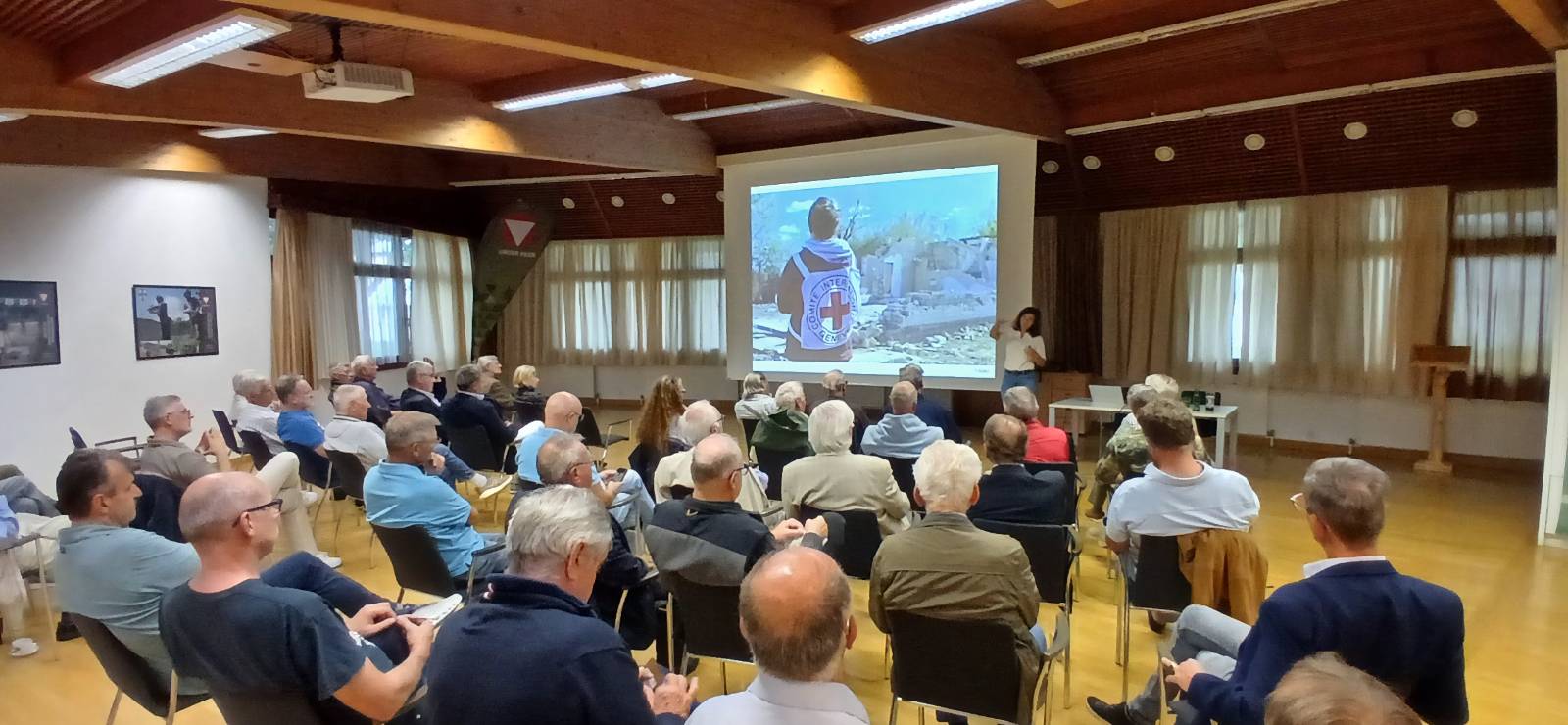 Eingeladen waren nicht nur die Mitglieder der VGWMP und Roten Kreuzes, sondern auch jene der Offiziers- und Unteroffiziersgesellschaft; trotz der kurzfristigen Organisation und des schönen Wetters fanden zwanzig Interessierte den Weg in den Vortragsraum.